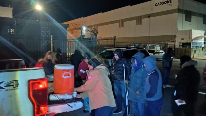 H. Matamoros, Tamaulipas.- Con un profundo sentido humano y priorizando el bienestar de la ciudadanía, Protección Civil Matamoros, por instrucciones del alcalde Beto Granados, acudió a la maquiladora Tridonex, ubicada en el parque industrial Finsa Oriente, para brindar apoyo directo a trabajadores que permanecen en el exterior de la empresa debido a un conflicto laboral.