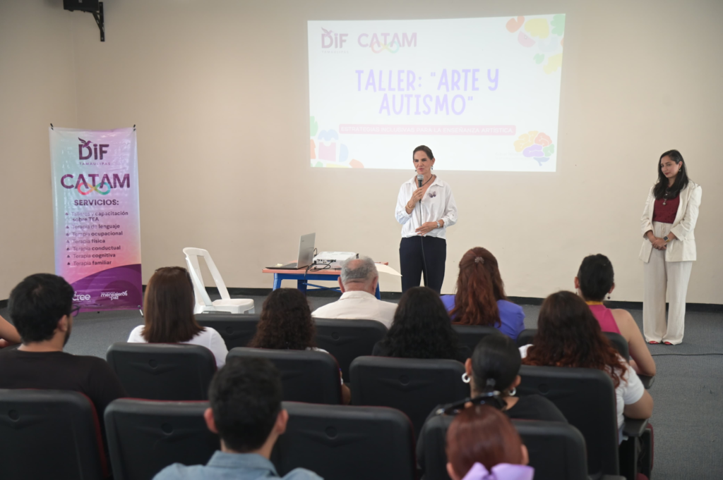 A fin de seguir construyendo instituciones más humanas e inclusivas, la Presidenta del Sistema DIF Tampico, Dra. Luz Adriana Villarreal Anaya, encabezó los trabajos del curso-taller «Arte y Autismo: Estrategias de Inclusión Artística», impartido a todo el personal del organismo por parte del Centro de Autismo, Tamaulipas y el Instituto Tamaulipeco para la Cultura y las Artes.