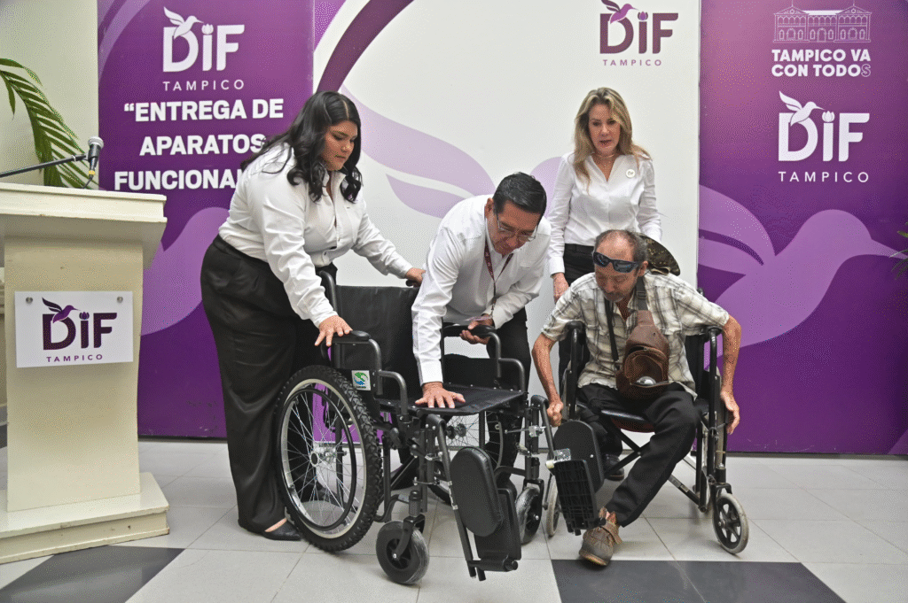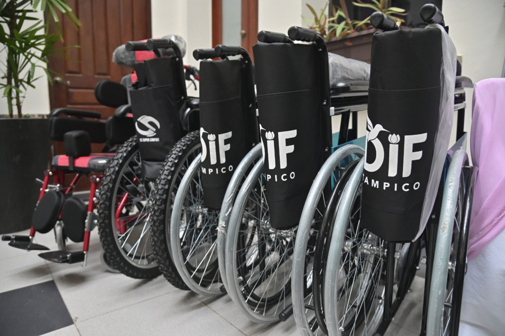 «Hoy, con ese mismo cariño y propósito hacemos entrega de un total de 92 apoyos, en beneficio de 32 tampiqueños, los cuales constan de sillas de ruedas, sillas cómodo y andadores con ruedas, además de glucómetros, baumanómetros, paquetes de pañales y fórmula láctea», expresó.