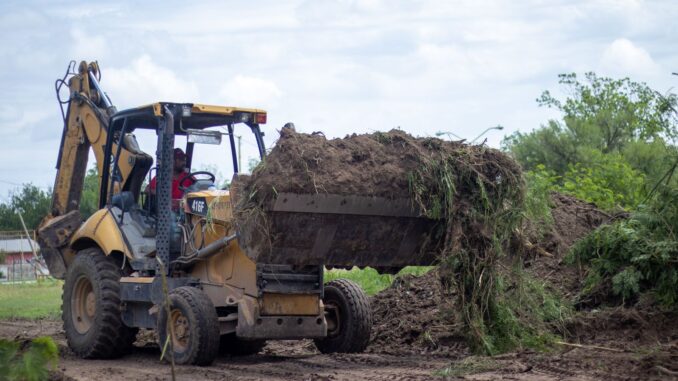 Personal de Servicios Primarios del Gobierno Municipal, llevan a cabo labores de deshierbe y limpieza en la lateral del canal ubicado en la calle 17ava en el barrio conocido como el Tepito, en la parte trasera del Centro de Maestros.