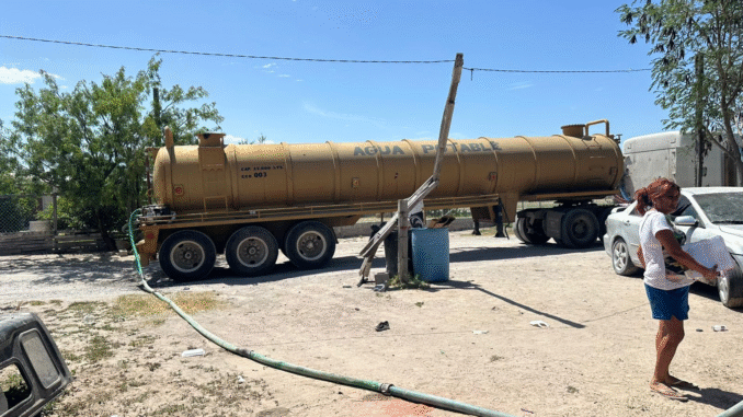 Una pipa de 22,000 litros de agua potable visitó la colonia Villa Real, donde atendió a las familias del sector, para cumplir con sus necesidades por medio del programa emergente de abasto extraordinario del Gobierno Municipal que preside Carlos Peña Ortiz.
