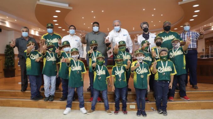El presidente municipal, Arturo Sanmiguel Cantú, felicitó a los equipos de la categoría ‘Moyote’ de 7-8 años y ‘Premoyote’ de 5-6 años, de la Liga Oriente de Béisbol, por el campeonato y subcampeonato que obtuvieron en un torneo nacional.