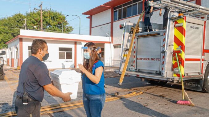La funcionaria visitó la Estación Central y las subestaciones de Protección Civil y Bomberos (PCyB), para agradecer a los socorristas por su desempeño, principalmente ante la pandemia por Covid-19, guardando las medidas sanitarias.