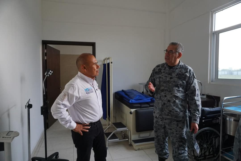 Luego de la ceremonia de honores a los símbolos patrios y del corte del listón inaugural, el Alcalde acompañó al General Ignacio Murillo a un recorrido guiado por las instalaciones, estando presente también el Mayor Diego Rangel, coordinador operativo del 12o. Batallón en la región norte de Tamaulipas.