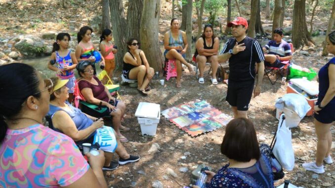 Posteriormente recorrió la margen del río donde saludó y conversó con integrantes de las familias que instalaron su campamento provisional para disfrutar del agua, la naturaleza y variedad gastronómica de los comerciantes de la comunidad ejidal.