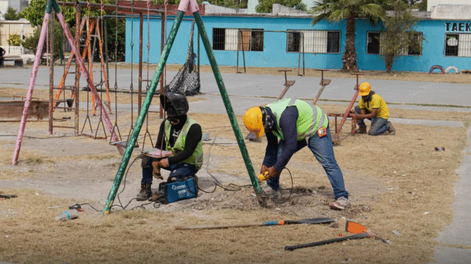 H. Matamoros, Tamaulipas.- Por instrucciones del alcalde Beto Granados, la Cuadrilla Renace inició los trabajos de mantenimiento y rehabilitación en el área recreativa de la colonia Roberto Guerra, con el objetivo de recuperar este espacio y garantizar que las familias del sector cuenten con un lugar digno para convivir y disfrutar.