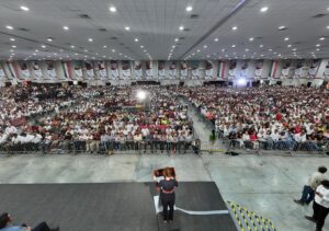 “Muchas gracias, Américo, por el trabajo que realizas, por tu entrega, tu consistencia, tu convicción y tu amor al pueblo de Tamaulipas. Felicidades, Américo, por el gran trabajo que estás haciendo”, expresó la presidenta de México, durante el evento “La Transformación Avanza en Tamaulipas”, como parte de su recorrido por todo el país con motivo de su primer informe de Gobierno, ante más de 10 mil personas, en el Polyforum de Ciudad Victoria.