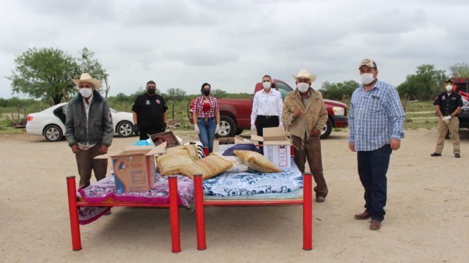 Los delegados que recibieron los apoyos fueron Advento Guerra de Los Treviño, Facundo García de Tres Palmas y Omar García de Los García, entre la ayuda que envió el presidente municipal hay tres camas y despensas que se entregaron a personas que se encontraban muy necesitadas así como otra dotación de tomate para las familias de esta región.