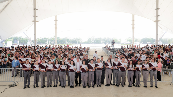 “Nos da mucho gusto estar aquí hoy con ustedes, con sus familiares, con sus padres de familia, constatando un hecho más de esta gran transformación que vive nuestra nación hacia un modelo humanista, hacia un modelo donde lo que se privilegia es el bienestar social y la oportunidad de desarrollo más equitativo para todos”, expresó.