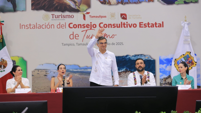 Tampico, Tamaulipas.- El gobernador Américo Villarreal Anaya presidió la instalación del Consejo Consultivo Estatal de Turismo y, ante la presencia de la secretaria Josefina Rodríguez Zamora, reiteró el compromiso para alinear el potencial turístico de Tamaulipas y que las cifras e indicadores sigan mostrando crecimiento y prosperidad.