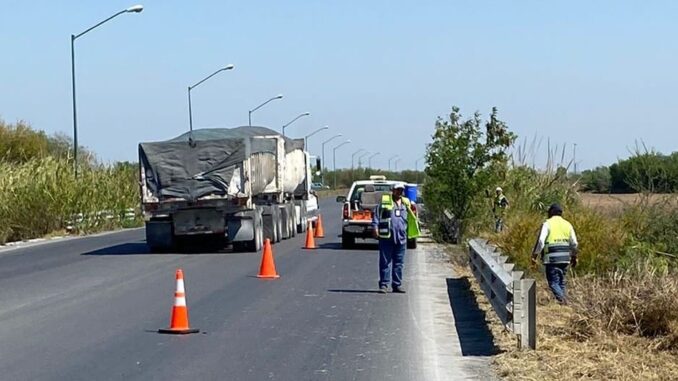 En los trabajos de limpieza y chapoleo que se realizan a lo largo de la carretera Ribereña y del libramiento de tráfico pesado «Gral. Lázaro Cárdenas», participan también elementos de la Dirección de Tránsito y del Departamento de Mantenimiento Vial, coadyuvando con sus acciones a mejorar las condiciones de los accesos a Miguel Alemán.