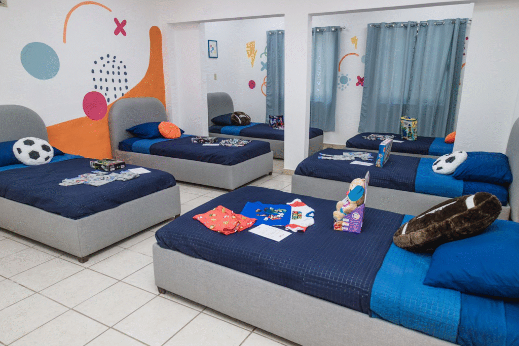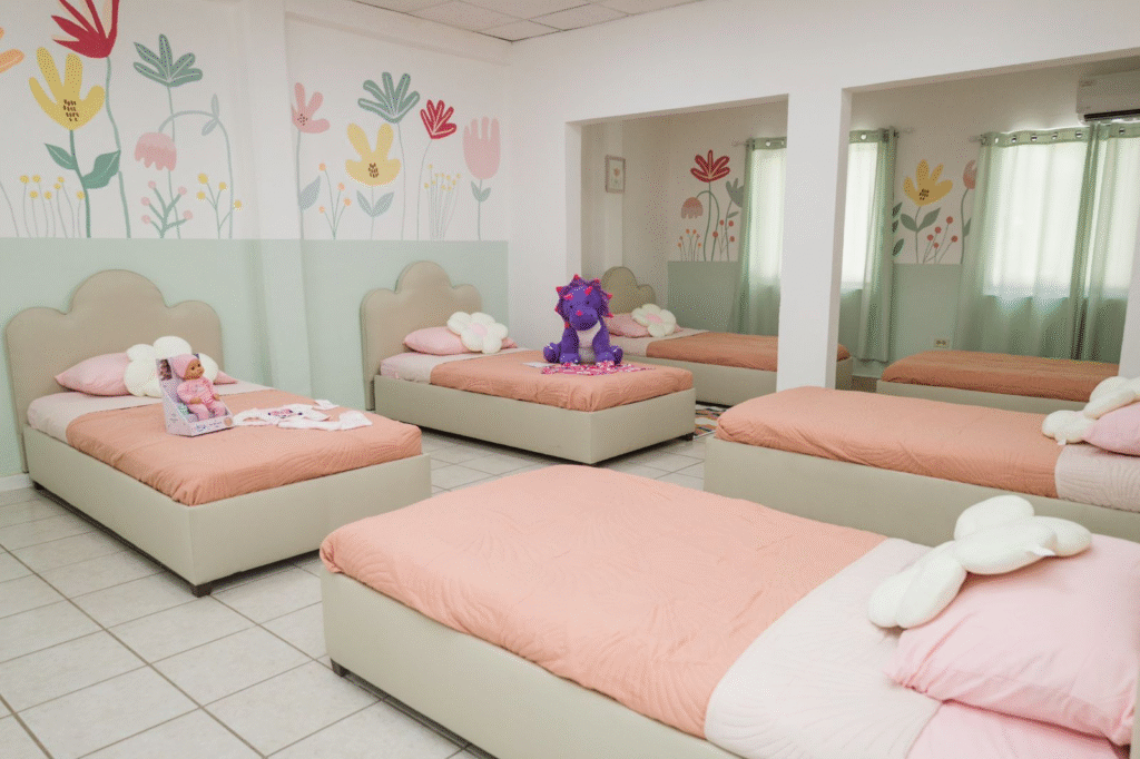Asimismo, la rehabilitación incluyó la renovación de cuneros y habitaciones destinadas a los menores, asegurando espacios más confortables y adecuados para su desarrollo. Los cuartos ahora cuentan con camas completas, almohadas y accesorios en general, creando un ambiente cálido y acogedor para los pequeños.