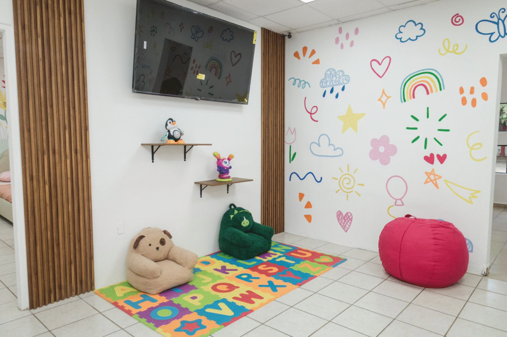 Uno de los grandes avances es la creación de un área de juegos completamente equipada, que incluye mesas, sillas y un espacio lúdico diseñado para potenciar la creatividad y el desarrollo motriz de los menores. Además, se habilitó una sala audiovisual moderna, con una televisión y todo lo necesario para que los niños puedan disfrutar de películas y momentos de relajación.
