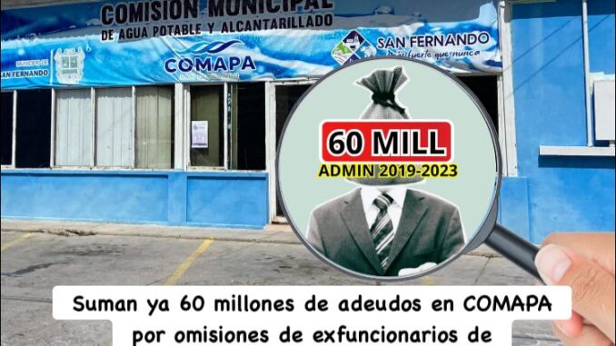 San Fernando, Tam.– La actual administración de COMAPA San Fernando enfrenta una deuda de 12 millones de pesos por requerimientos del SAT, derivados de omisiones fiscales cometidas por exfuncionarios entre 2019 y 2023.