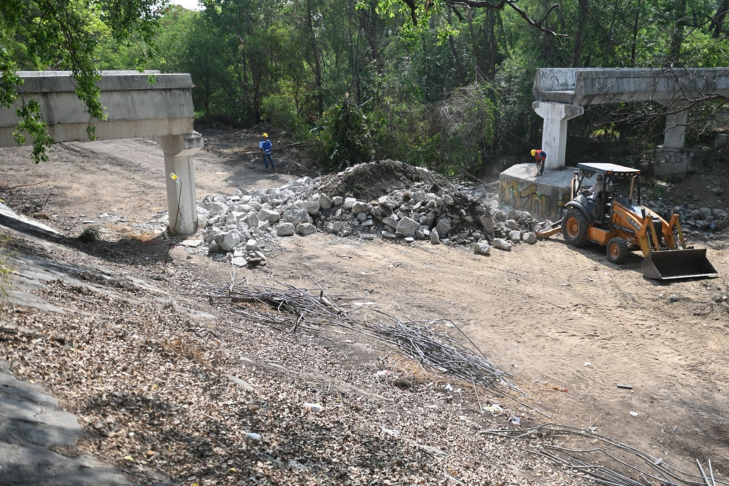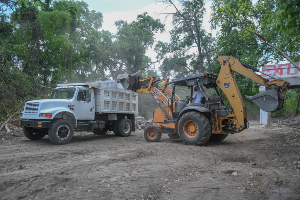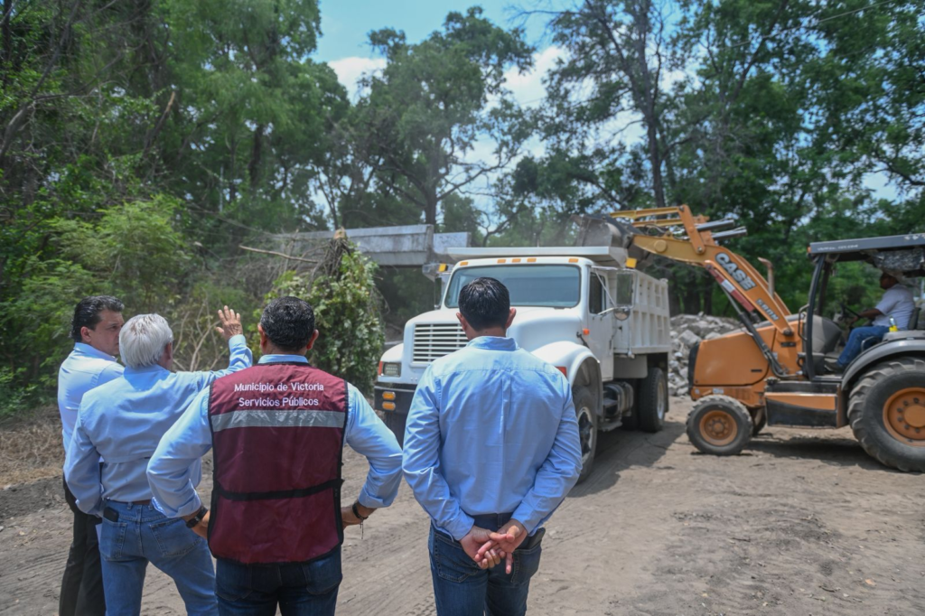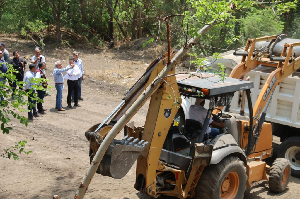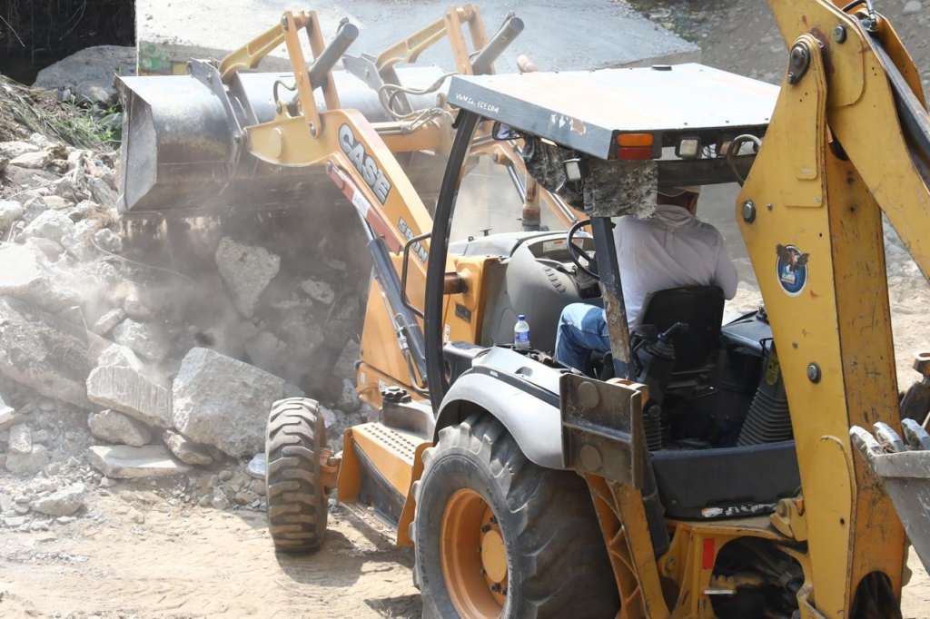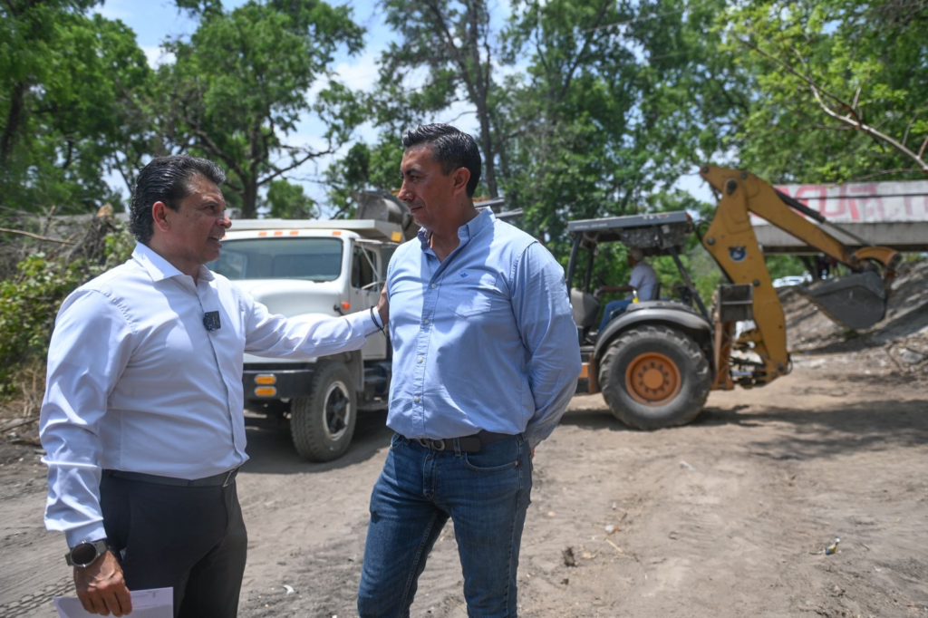 Acompañado del Secretario de Obras Públicas Eusebio Alfaro Reyna y el Coordinador de Protección Civil Municipal Livio Flores Rodríguez, verificó el avance de los trabajos de demolición y retiro inmediato del material para evitar afectación del afluente y su fauna.