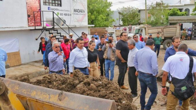 Eduardo Gattás Báez detalló que como primeras acciones se trabaja en la limpieza y desazolve de drenes pluviales que se llenaron de arena, tierra, piedras y ramas, restauración de semáforos dañados y retiro de material y escombro de la barda colapsada en la escuela primaria José Dolores Ponce Rodríguez.