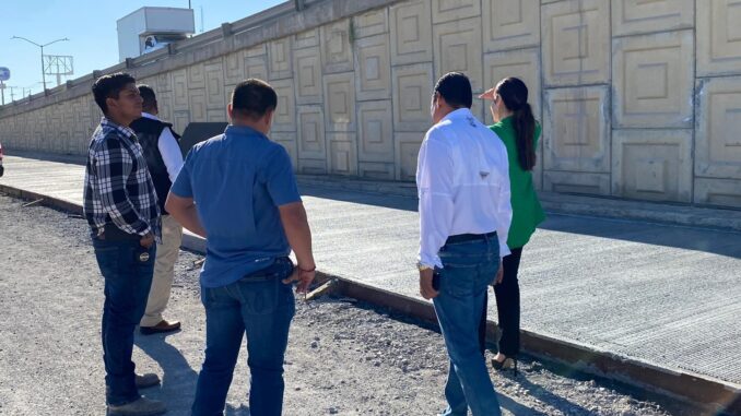 En el recorrido se inspeccionó la repavimentación con concreto hidráulico en el retorno del lado oriente bajo el puente Colosio a la altura del Parque Industrial América, obra que se encuentra en un proceso del 70%.