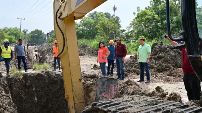 La Presidenta Patty Chío acompañada por el regidor comisionado en Obras Públicas, Ricardo Espinosa Velázquez y el Director de la misma área Pedro González Ángeles, supervisó la ejecución de la primera etapa de la obra del colector Chapultepec, acción que permite avanzar en rescate del saneamiento ambiental y unir acciones con el Gobierno de Américo Villarreal Anaya al conectarse con el colector Zapata que también será rehabilitado y recibir las descargas de drenaje de las nacionales colectivas.