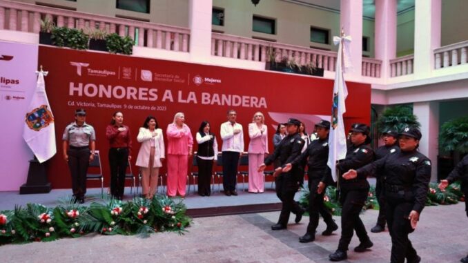 Tras citar a mujeres que se destacaron por diversas aportaciones como Gertrudis Bocanegra, Estefanía y Teodosia Castañeda, así como a Rita Cetina, el mandatario estatal también se refirió a la inclusión del escudo de Tamaulipas en el punto central del patio, colocado como parte de un proceso de restauración del edificio, símbolo del patrimonio de las y los tamaulipecos.