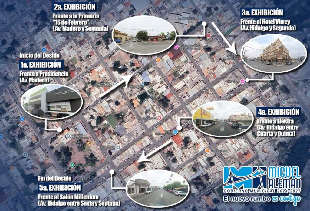 - El primero, al inicio del tradicional Desfile, al pie de la Presidencia Municipal, por la avenida Francisco I. Madero.