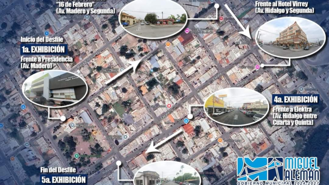 - El primero, al inicio del tradicional Desfile, al pie de la Presidencia Municipal, por la avenida Francisco I. Madero.