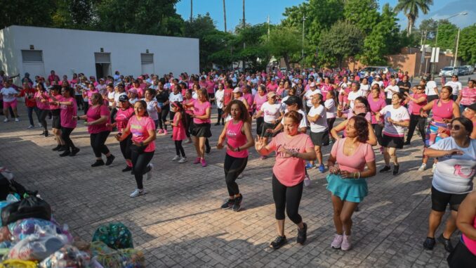 «Para el gobierno que encabeza el alcalde Lalo Gattás ustedes son unas guerreras que luchan con coraje, esperanza y valentía por su salud. Gracias por inspirarnos a ser valientes» dijo Lorena Zapata Medina, secretaria de Bienestar Social, al inaugurar el zumbaton.