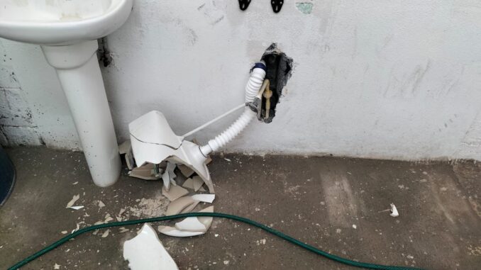 San Fernando, Tam.- A días de llevarse a cabo la reparación y sustitución de baños en el estadio municipal; personas desadaptadas realizaron actos vandálicos destruyendo uno de los lavabos y mangueras; acto que el Gobierno Municipal de San Fernando condena enérgicamente.
